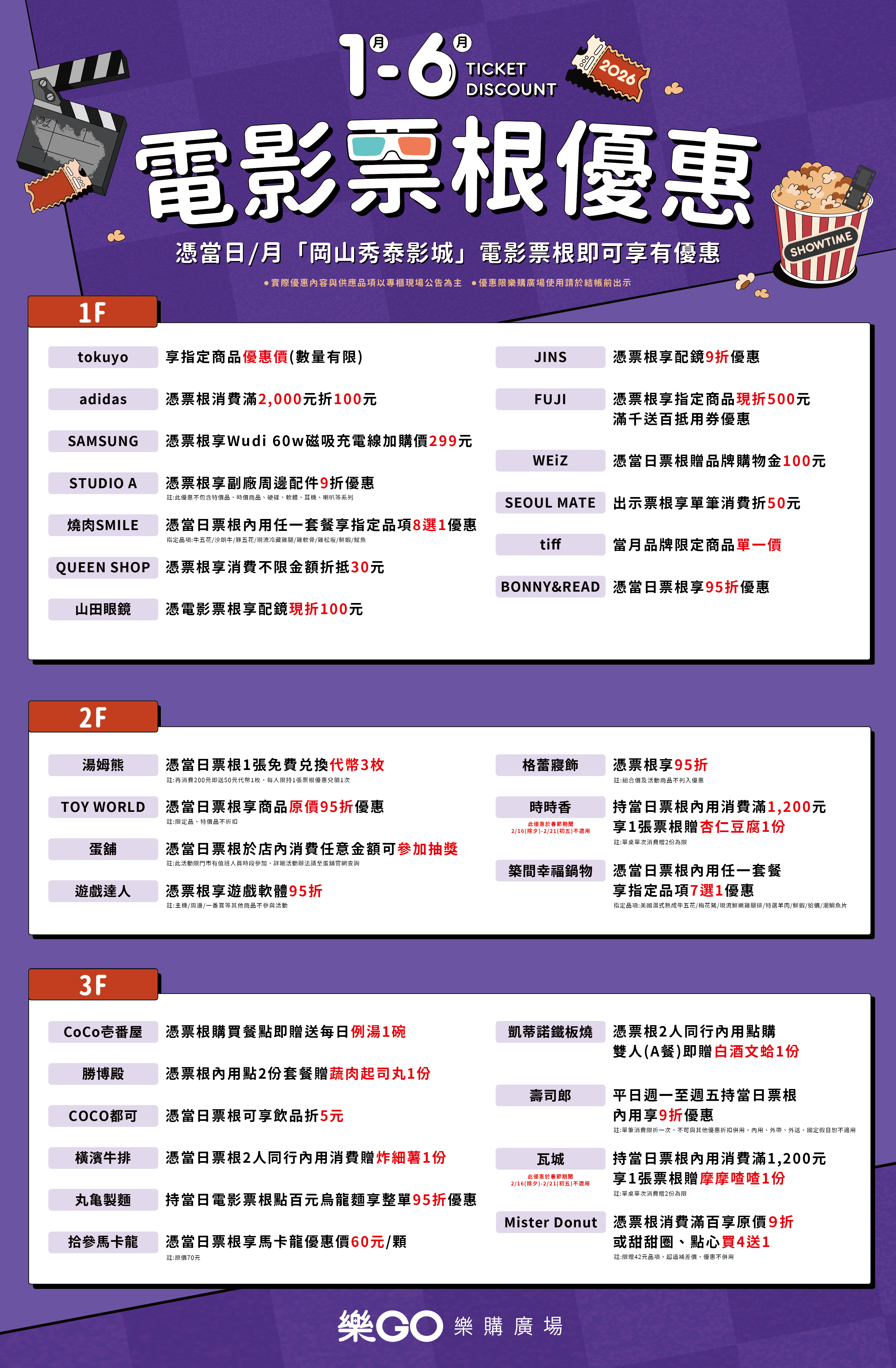 2026年電影票根優惠