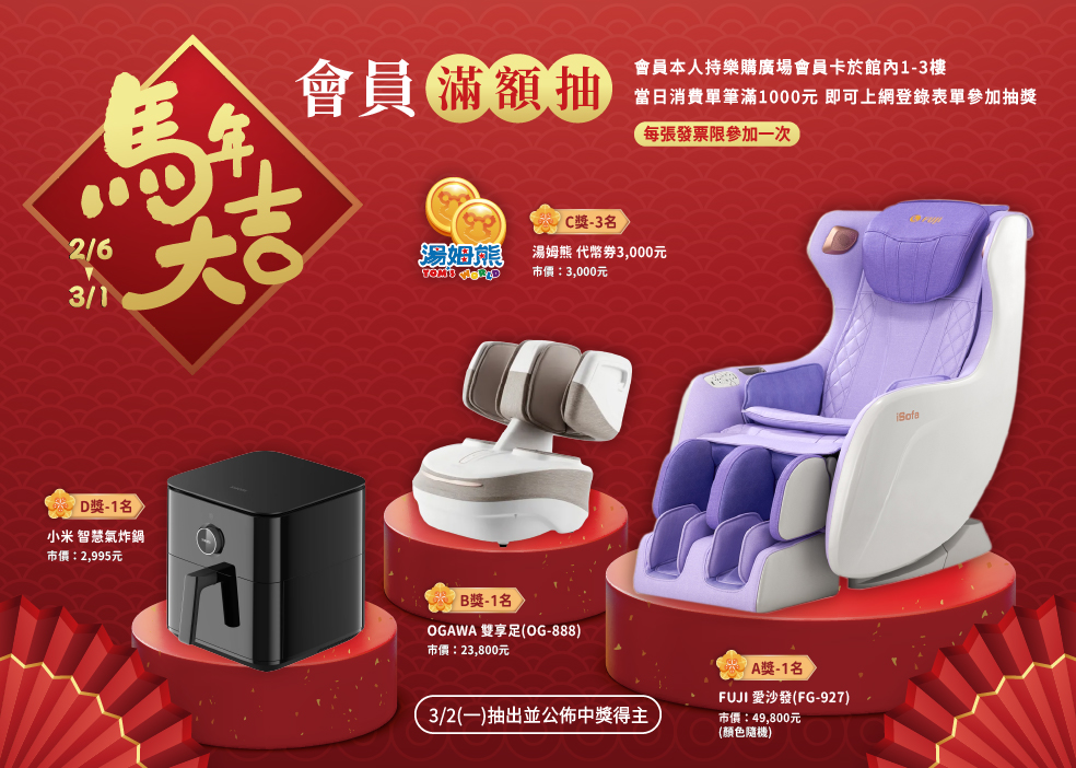 2026/02/06(五)-2026/03/01(日) | 馬年大吉會員滿額抽滿額抽大獎登錄連結