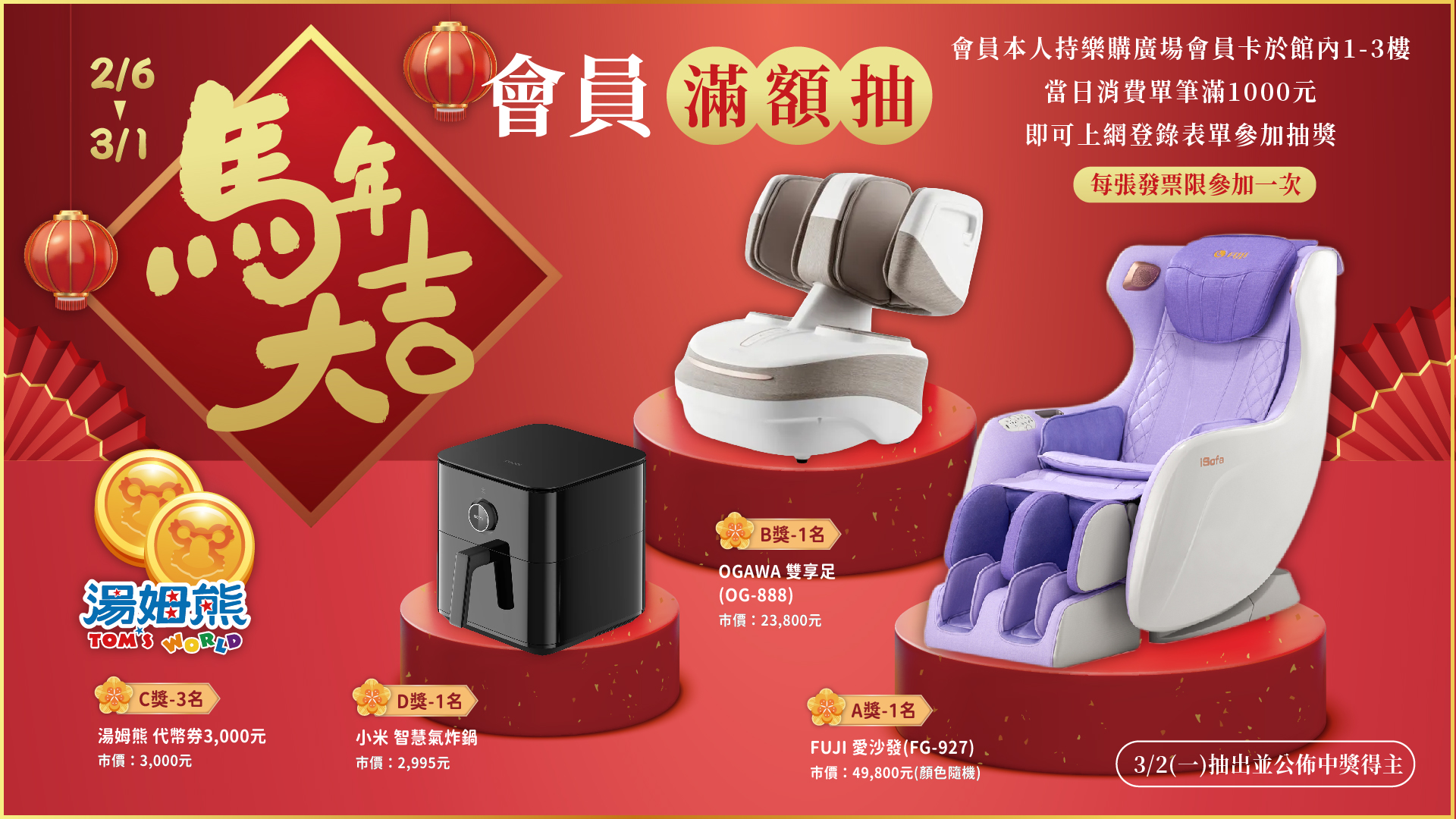 2026/02/06(五)-2026/03/01(日) | 馬年大吉會員滿額抽滿額抽大獎登錄連結